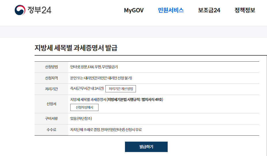 지방세 세목별 과세증명서 발급
