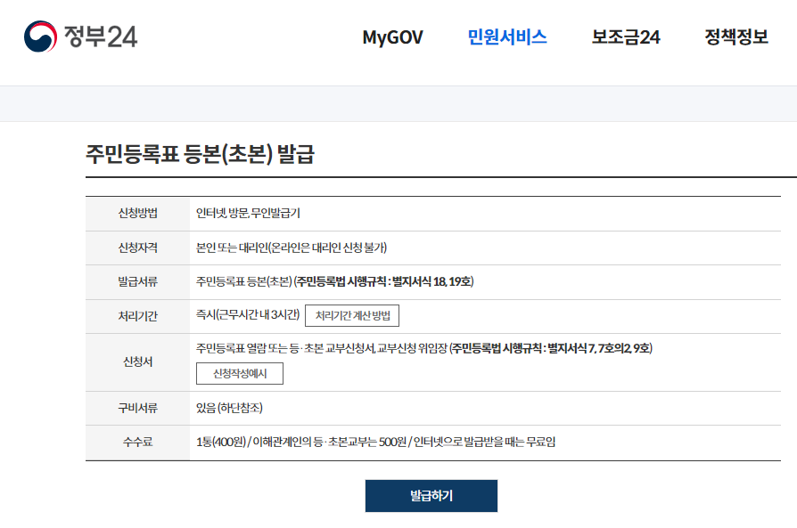 주민등록표 등본 발급