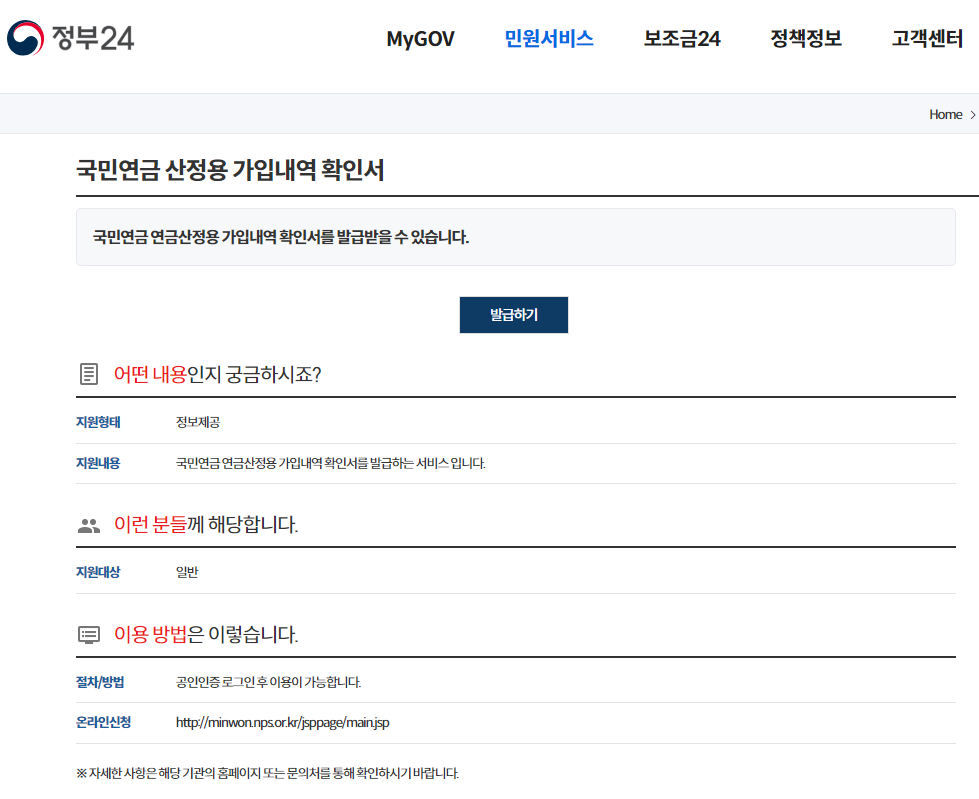 주요 서류 발급방법은 아래에서 다이렉트 링크를 통해 발급 가능합니다.